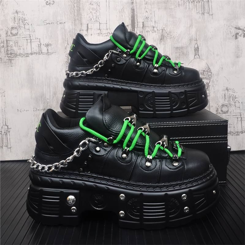 Men's Casual Shoes 2024 Autumn Winter New Thick Sole Height Increasing Dad Shoes Metal Punk Style Small Leather Shoes