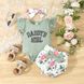 Adorabile completo da neonato composto da 3 pezzi con ricamo di lettere e stampa a fiocco, in morbida maglia di cotone, comodo ed elegante per neonati (0-12 mesi)