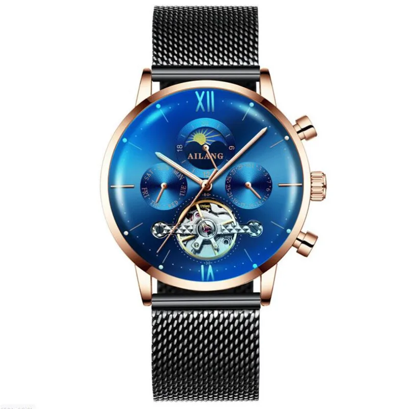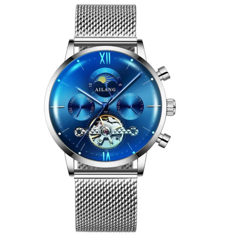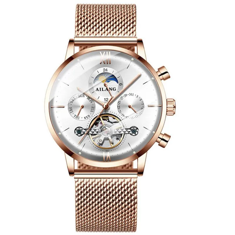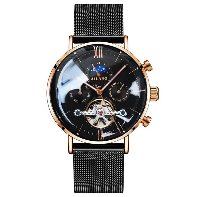 AILANG Uomo Automatico Meccanico Tourbillon di Lusso da Polso Uomo Cintura in Maglia di Acciaio Inossidabile es es