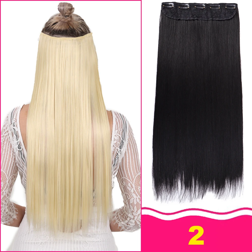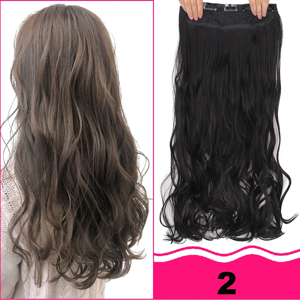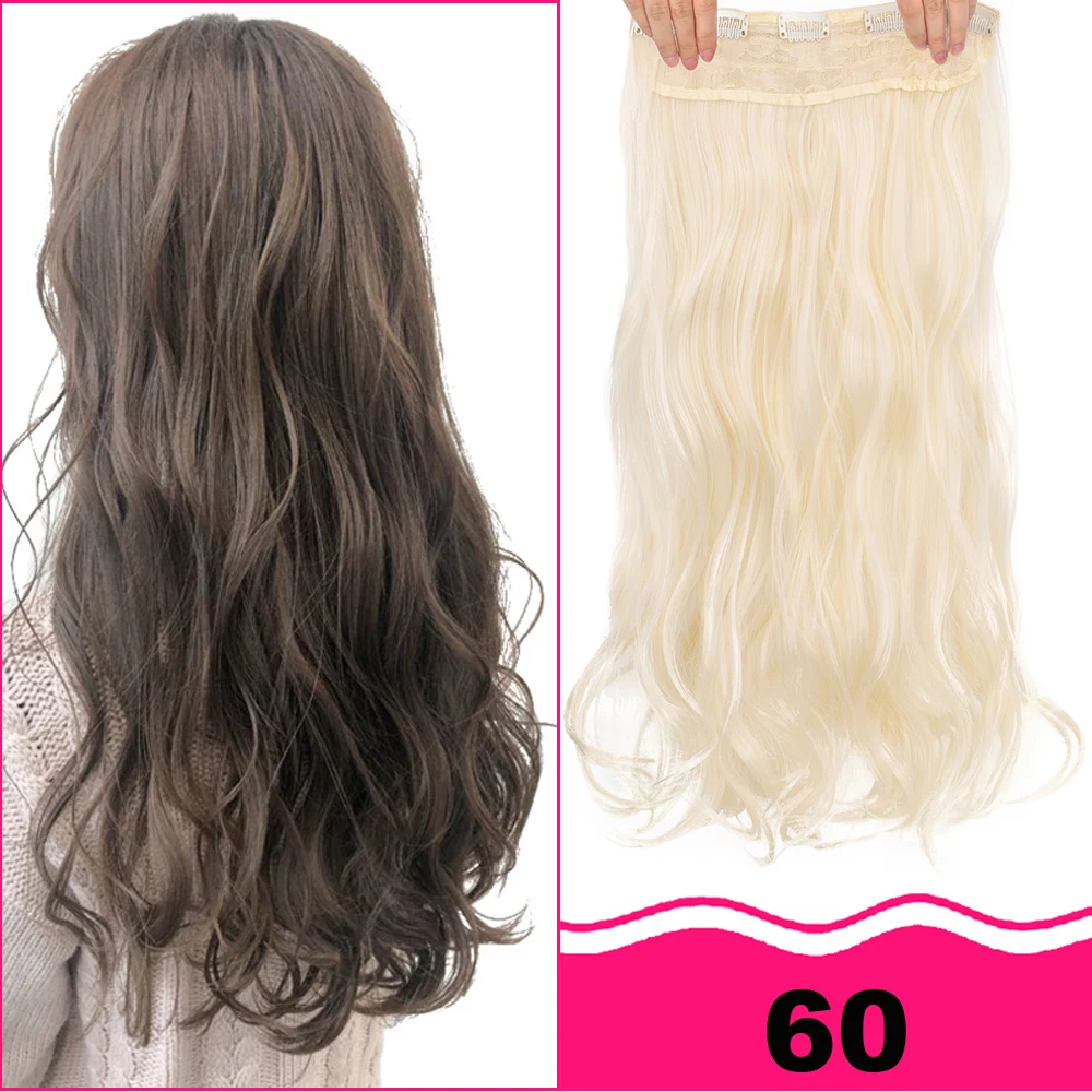 Allaosify 60cm 5 Clip In Extension per capelli Resistenti al calore Posticci per capelli lunghi e lisci Clip sintetici su capelli grigi