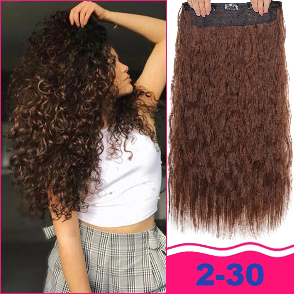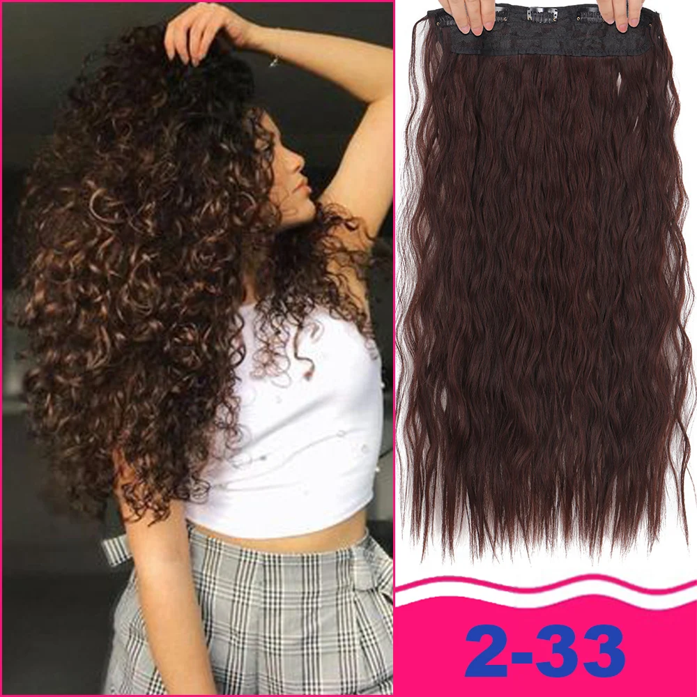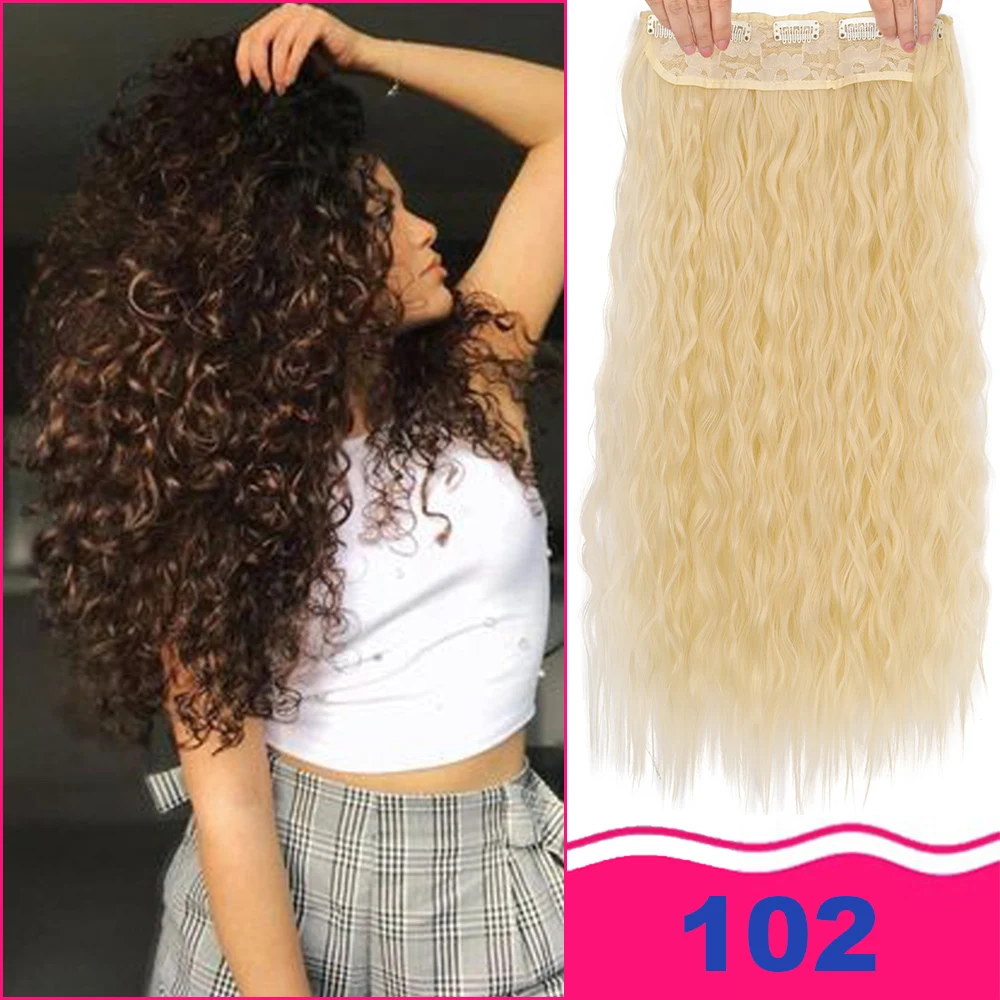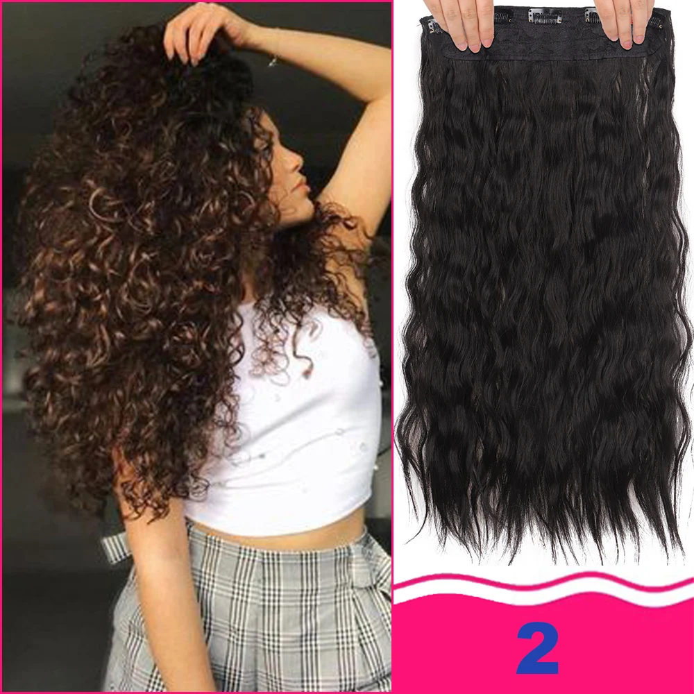 Allaosify 60cm 5 Clip In Extension per capelli Resistenti al calore Posticci per capelli lunghi e lisci Clip sintetici su capelli grigi