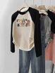 American Style Raglan Long Sleeve Plus Size T-Shirt for Women, New Thin Cotton Short Base Shirt for Spring and Autumn, Autumn and Winter Layering Top