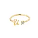 Stainless Steel Tiny Initial Letter Open Rings For Women Fashion Zircon A-Z Letters Adjustable Ring Female Wedding Aesthetic Je