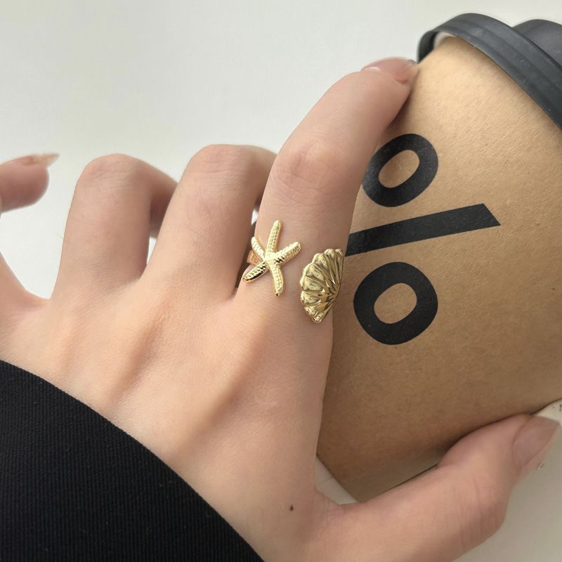 Fashionable Starfish Shell Design Open Ring for Women, Suitable for Beach Travel
