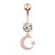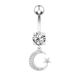 Anello con bottone in acciaio inossidabile semplice europeo e americano, ciondolo a forma di luna con zircone, moda danza del ventre, ago spesso per ombelico