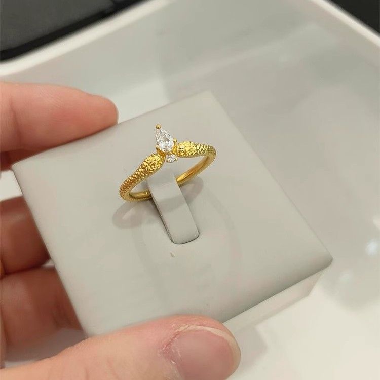 Vintage Style Gold Twin Snake Ring 2025 Zodiac Year Snake Year Water Drop Sparkling Diamond High-Value Versatile Index Finger Ring