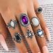 Anello in ametista, opale, zirconia, nero intagliato cavo, set da 7 pezzi