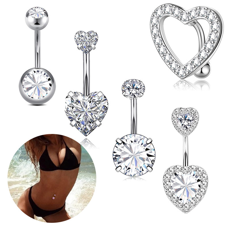 Anello invertito europeo e americano con micro pavé di zirconi a doppia testa, in acciaio inossidabile, per gioielli da ombelico