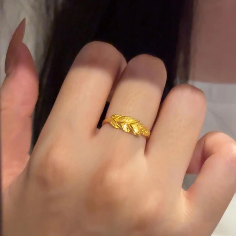 Vintage Flashy Gold Leaf Ring Fashionable Rich Sense Niche Design Exquisite Temperament Versatile Index Finger Ring