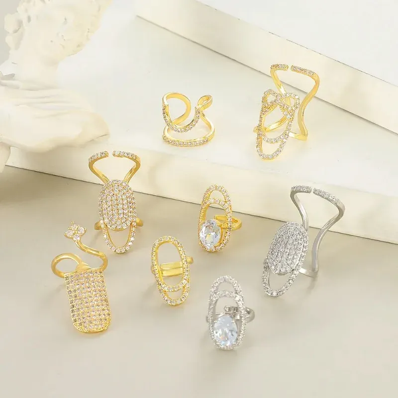 Anello per unghie con zircone intarsiato in rame alla moda per donne, accessori per gioielli da festa alla moda alla moda