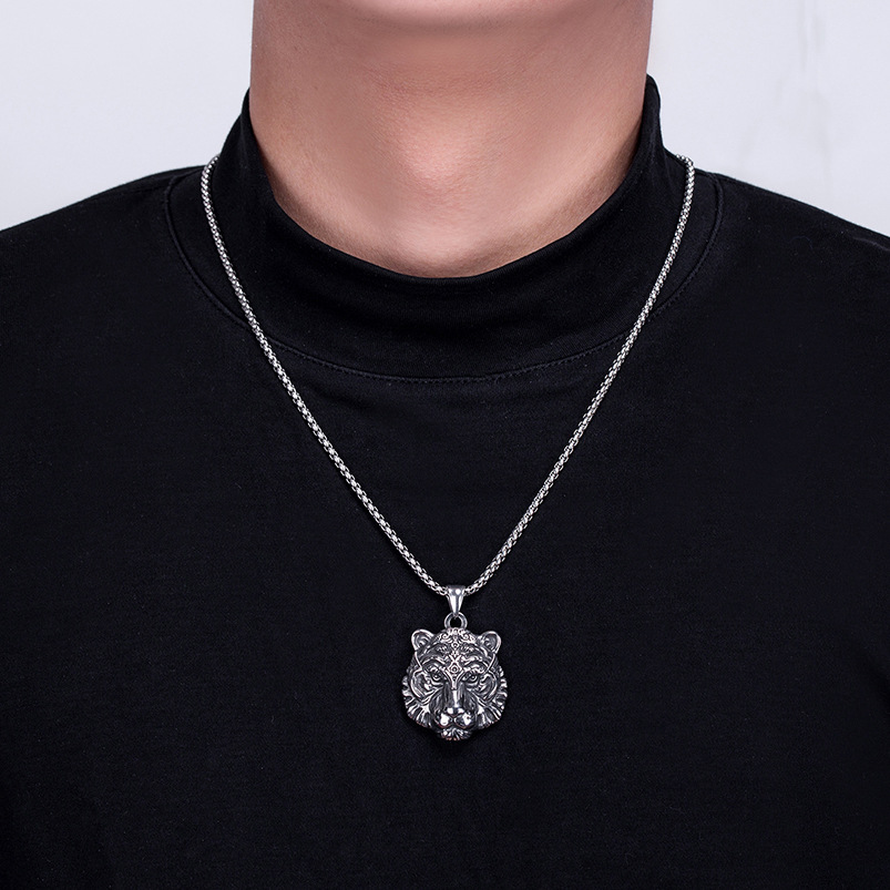 Anno 2022: Collana lunga da uomo con testa di tigre in acciaio al titanio