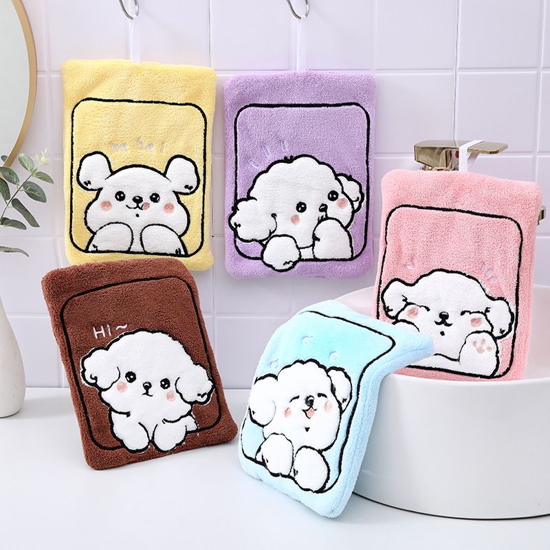 Asciugamano da appendere alla cucina per bambini, in pile di corallo spesso, assorbente e ad asciugatura rapida, modello Lillian Square Puppy