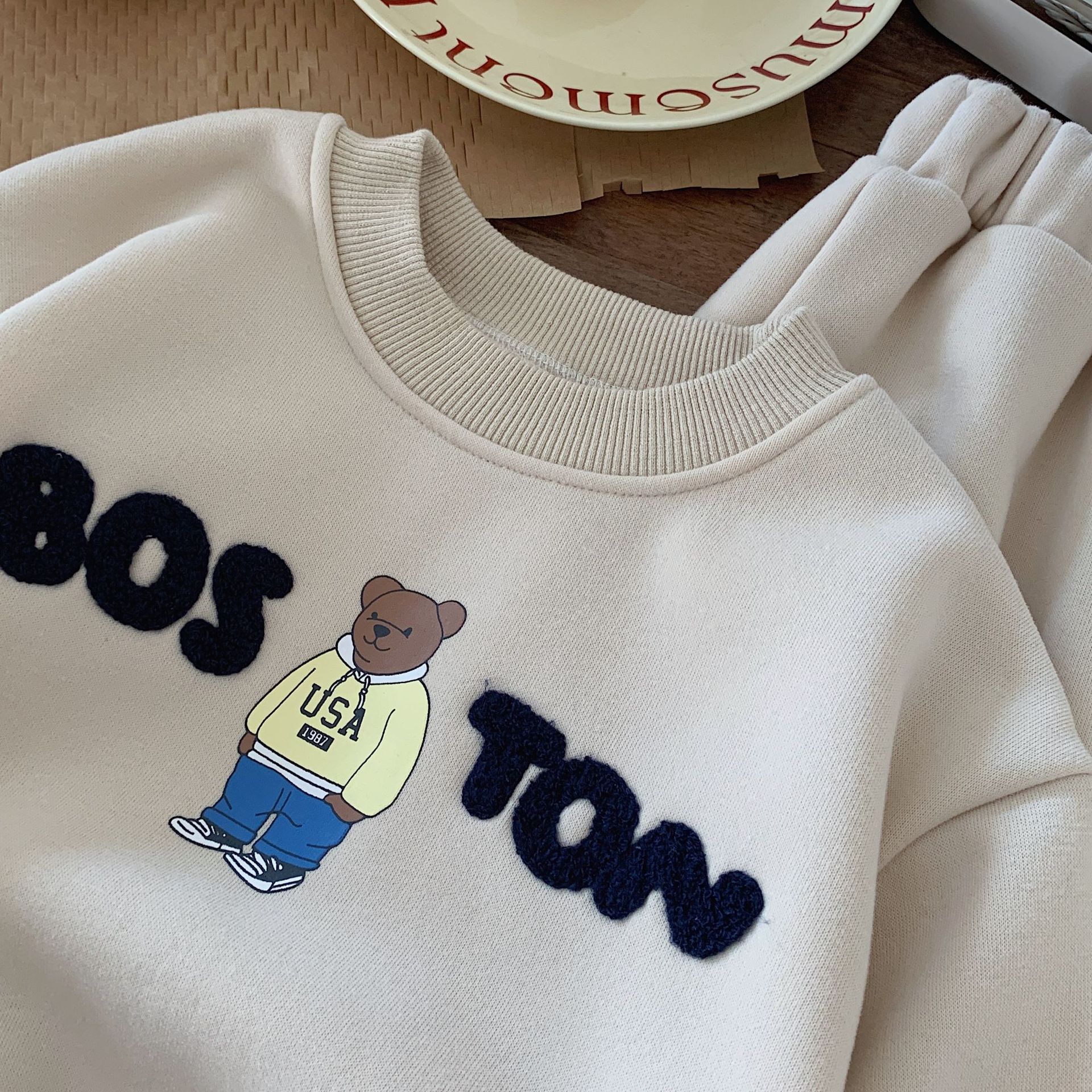 Asciugamano per ragazzi coreani 2023 Bangcheng Winter Edition ricamato orsetto peluche maglione a due pezzi moda