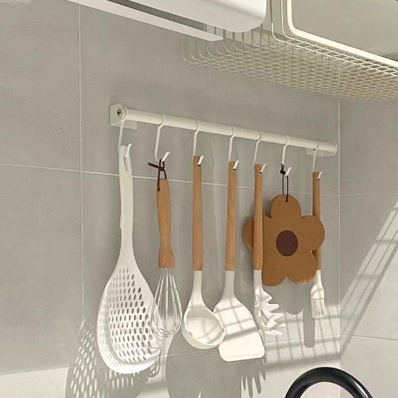 Kitchen Hanging Rod Wall-Mounted Storage Rack Pot Hook No-Drill Wall Storage Chopping Board Spoon Spatula Hanging Rack Magic Tool