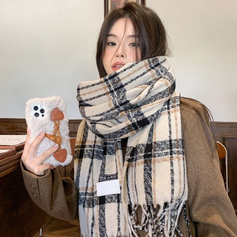Atmosphere, plaid splicing, versatile plaid scarf for women's winter luxury, 2024 new fashion, thickened