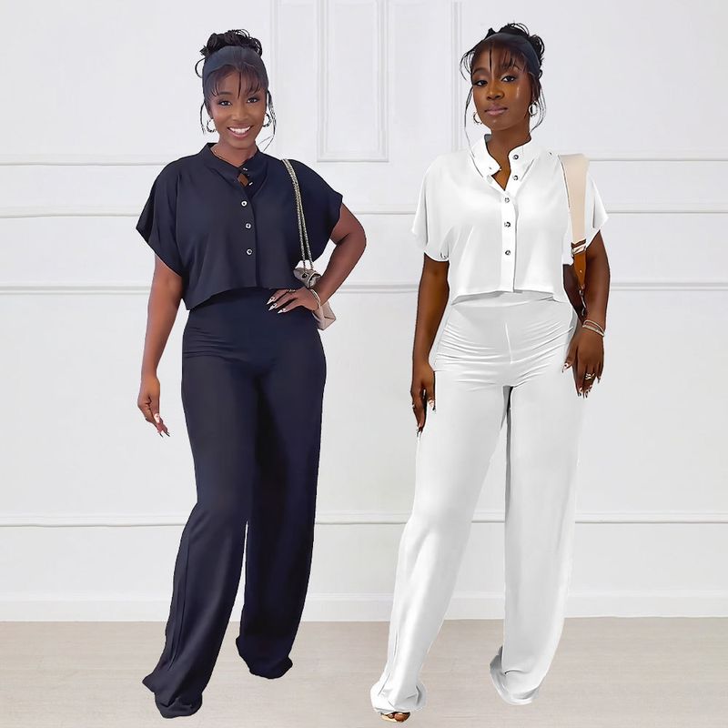 Audday 10311 Completo casual da donna in due pezzi con cardigan corto versatile, tinta unita, gamba dritta e pantaloni lunghi