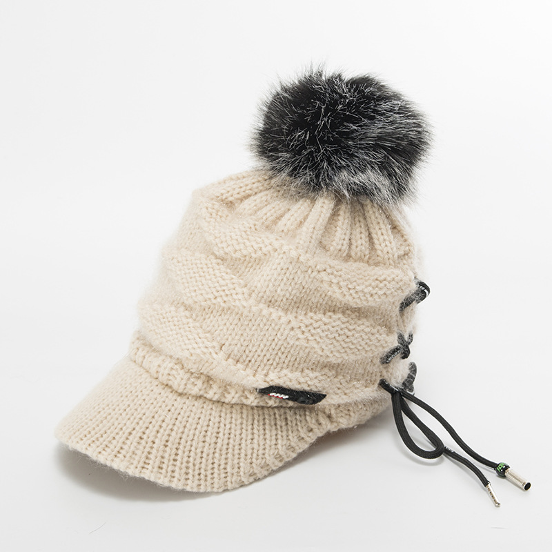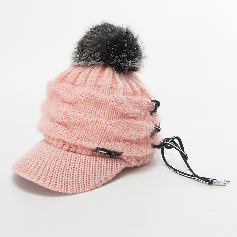 Autunno e inverno edizione coreana nuovo cappello Bailey in lana legato con lingua d'anatra in caldo velluto lavorato a maglia da donna