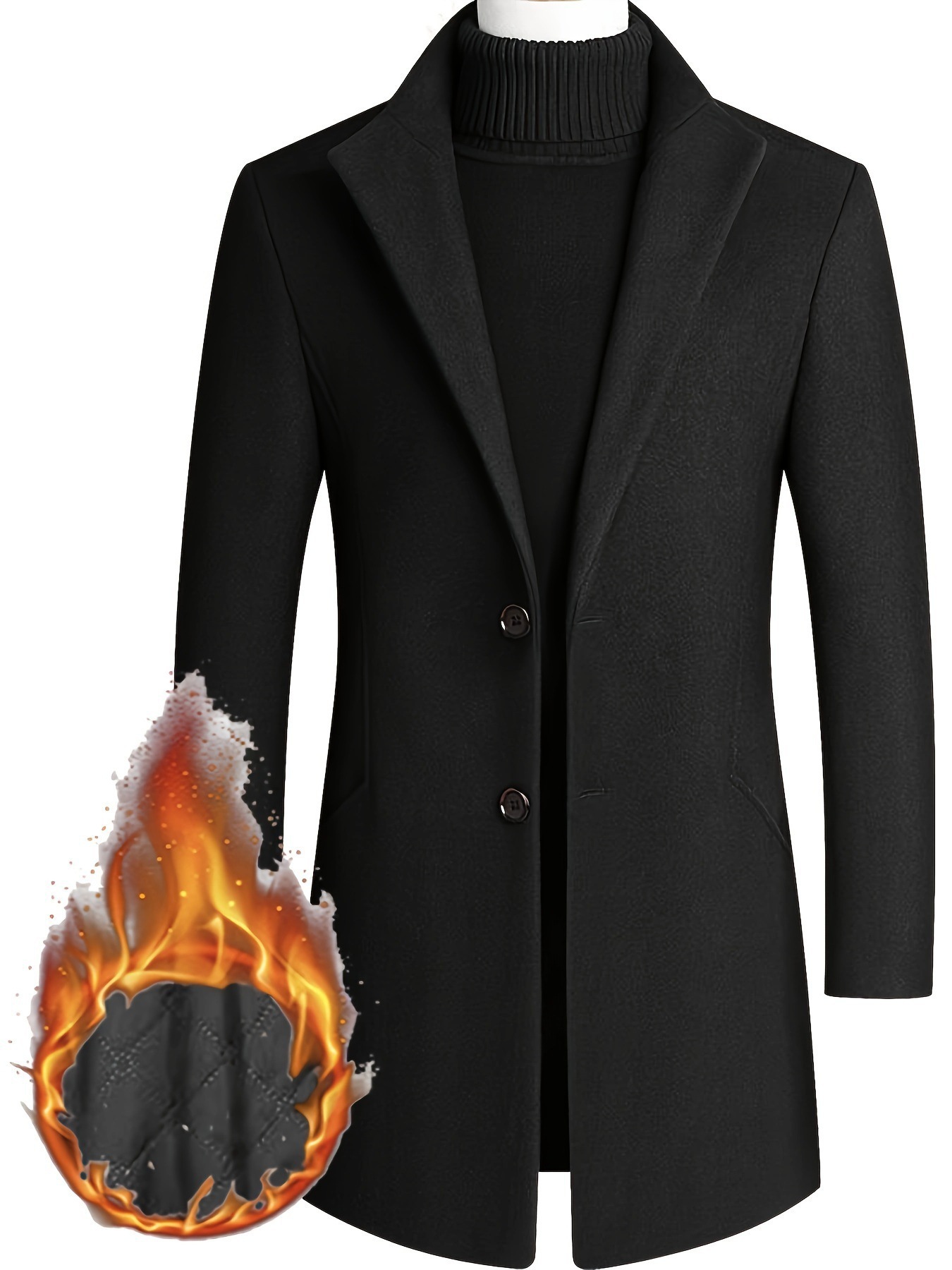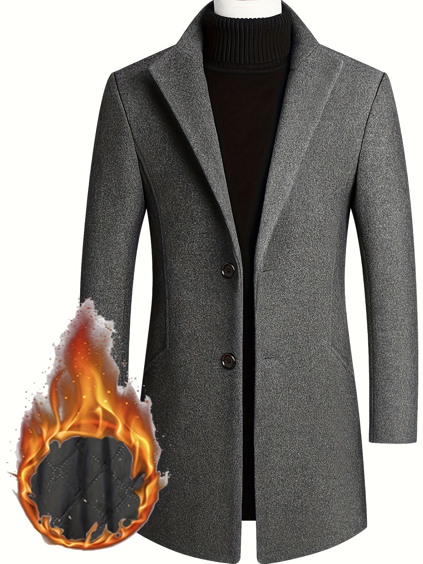 Giacca a vento di lana autunnale e invernale di media lunghezza, cappotto spesso da uomo in tinta unita, completo