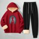 Autumn and winter thick hooded sweatshirt, lamb fleece men's autumn and winter style leg binding pants, men's casual two-piece set, size 12