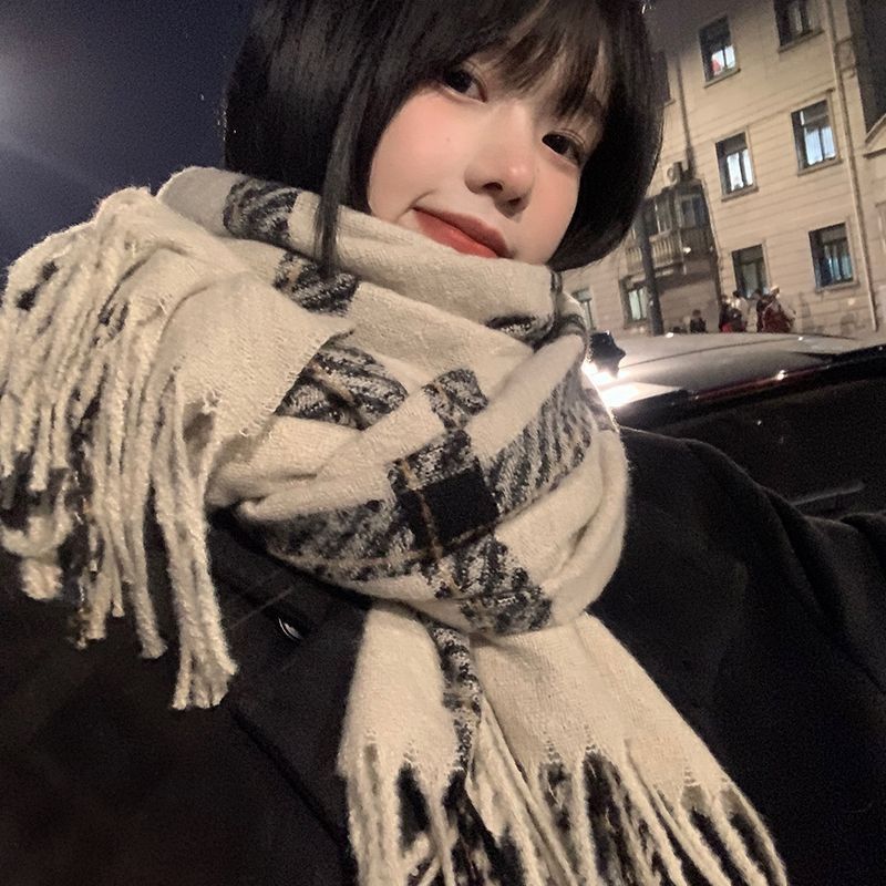 Autumn/Winter New Couple's Checkered Scarf Women's Winter Korean Edition High End Versatile Thick Warm Knitted Neck