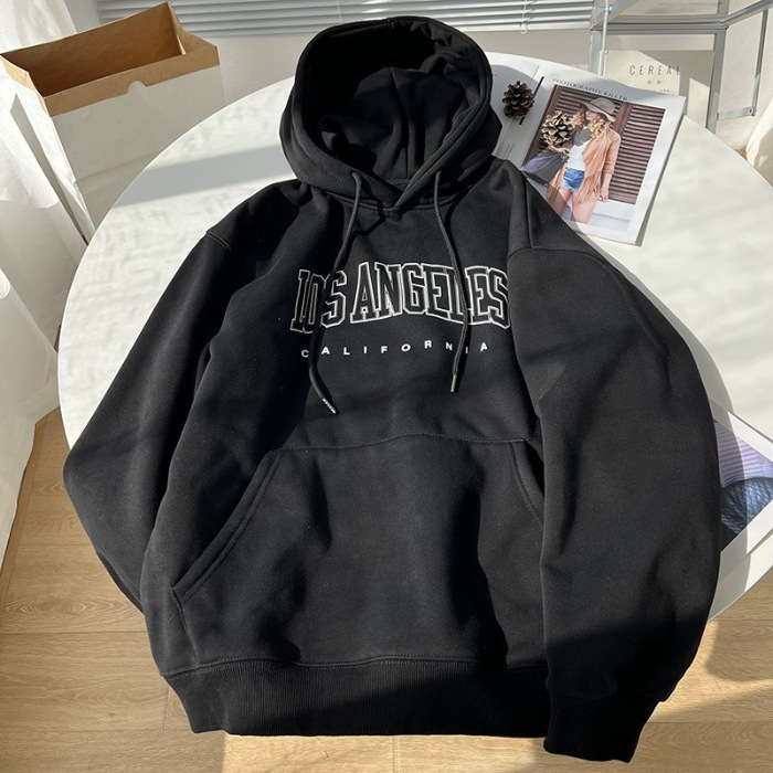 Autumn Winter New English Print Hooded Sweatshirt Unisex Korean Style Casual Lazy Style Fleece Simple Versatile Jacket