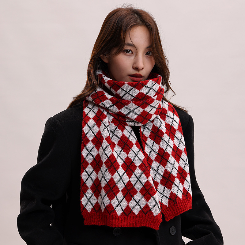 Sciarpa lavorata a maglia autunno inverno nuova con griglia a rombi, collo spesso e caldo, versatile per coppie, morbida