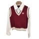 Autunno e inverno 2024 nuova camicia con colletto polo in stile accademia coreana, gilet in due pezzi, manica lunga, per donna