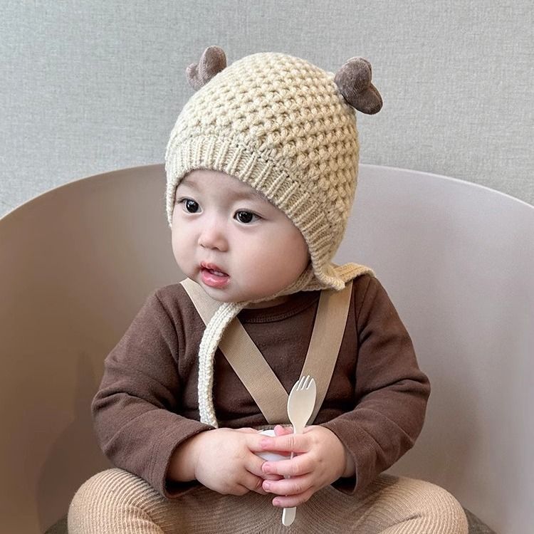 Baby Hat Autumn and Winter Cute Baby Warm Knitted Love Ear Protection Hat for Boys and Girls Small Month Old Woolen Pullover Hat