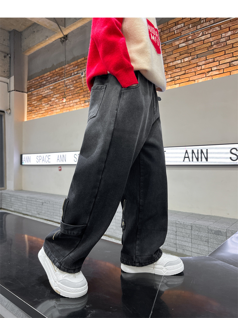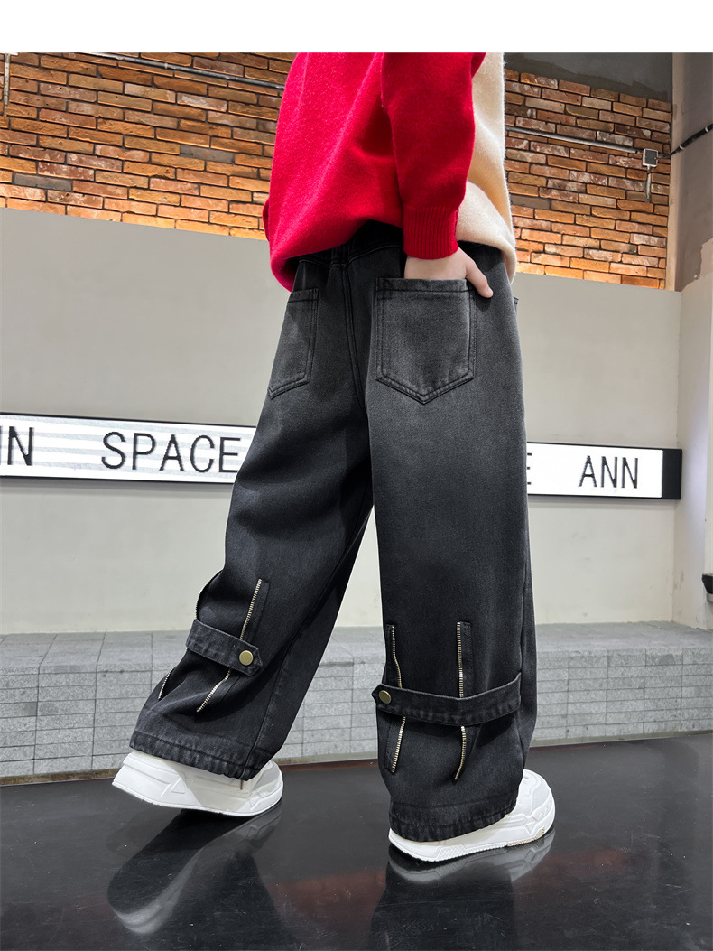 Children's clothing, boys' autumn wear, jeans, 2024 new style, mid size children's casual pants, spring and autumn styles, children's wide leg pants, trendy
