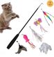 Bacchetta di peluche per gatti con testa di piuma sostituibile e asta estensibile, set di giocattoli da masticare per l'autointrattenimento dei gatti