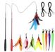 Cat Teaser Wand Plush Toy with Replaceable Feather Head and Extendable Rod, Self-Entertainment Chewing Toy Set for Cats