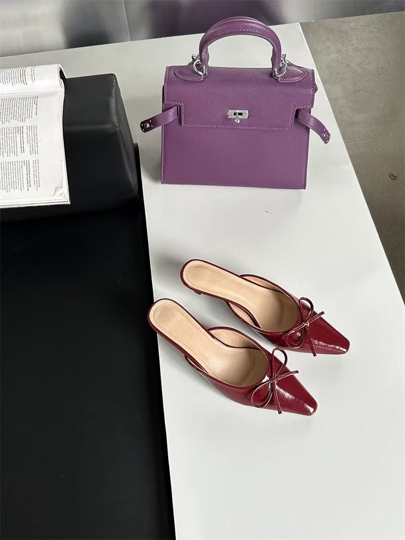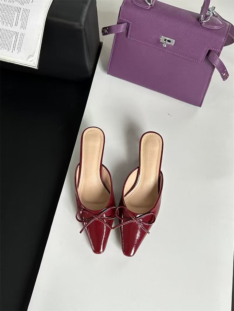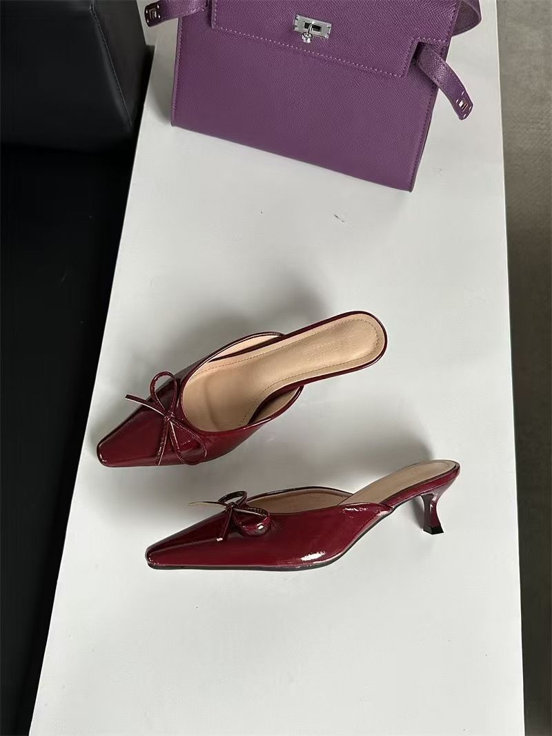 Baotou pantofole basse 2024 nuovo stile fata francese farfalla fiocco testa quadrata temperamento semplice tacco grosso mop fresco