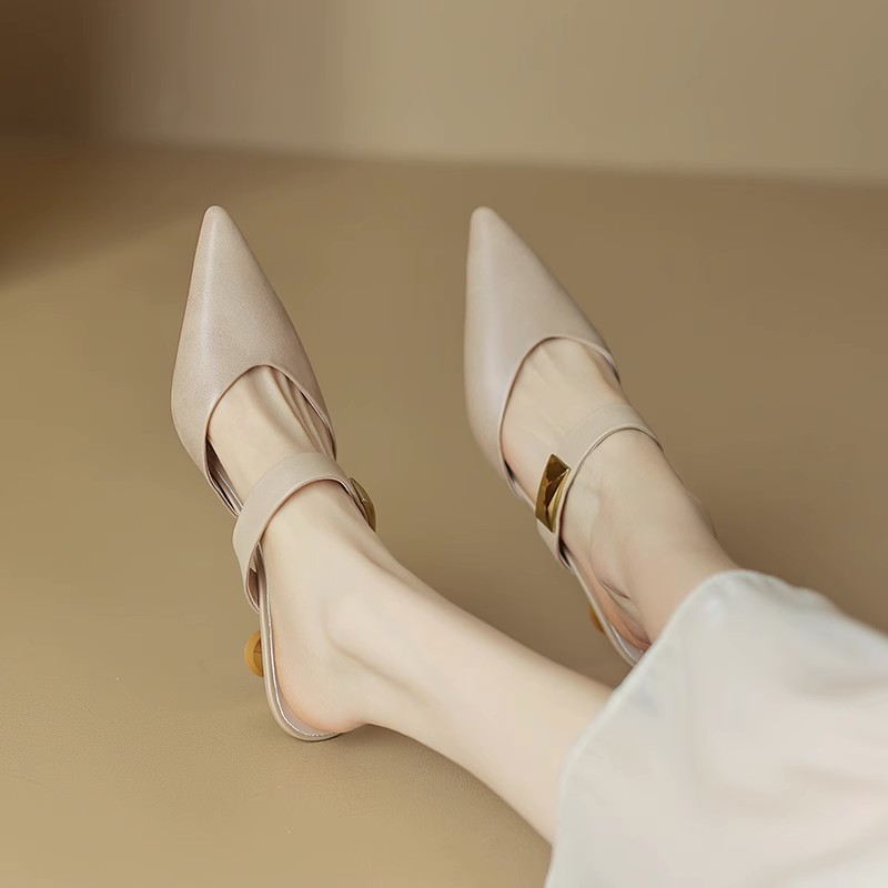 Baotou Semi-pantofole Tacco a spillo da donna Capispalla 2023 Estate New Soft scarpe a punta in pelle Muller sandali e pantofole con tacco alto