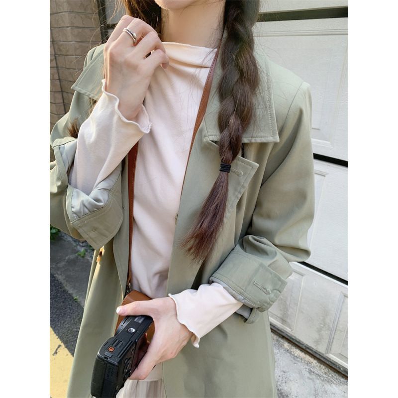 Base collo semi-alto tedesco abbinata a trench, gonna in velluto, gonna di media lunghezza