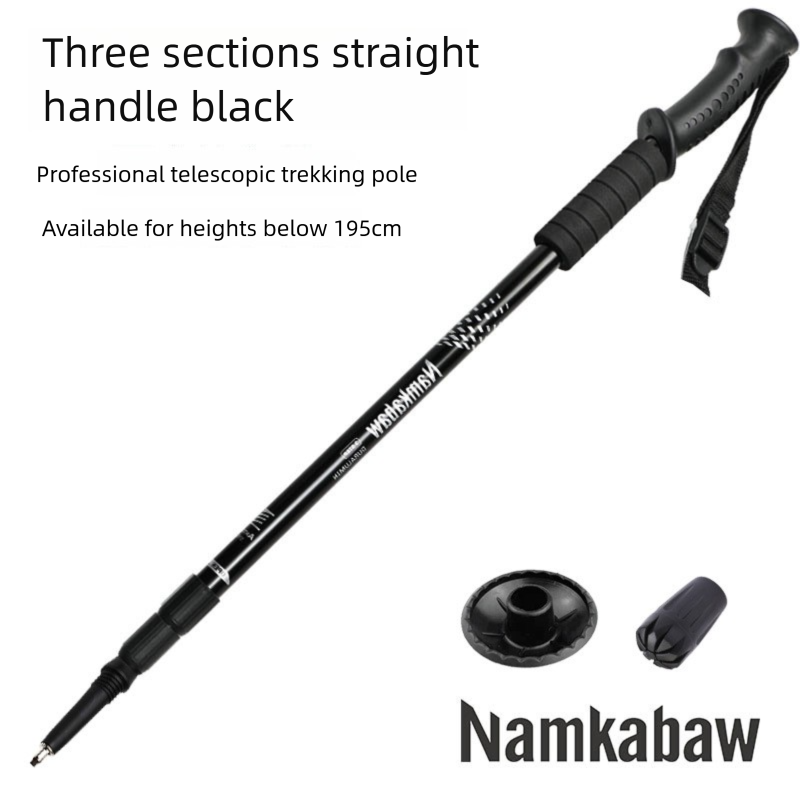 Aluminum Alloy Hiking Pole Three Section Straight Handle