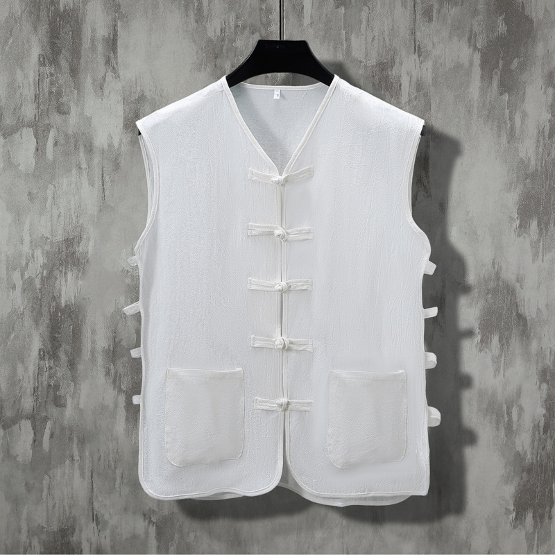 Beijing Kam Spalla 2024 Canotta in cotone sottile e canapa Canottiera in stile cinese con bottoni a clip Felpa da uomo anziano_voghion.com