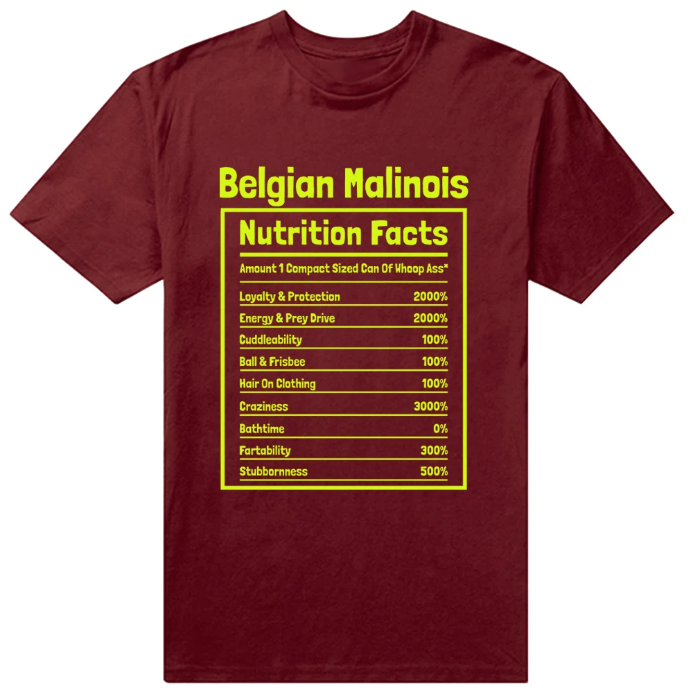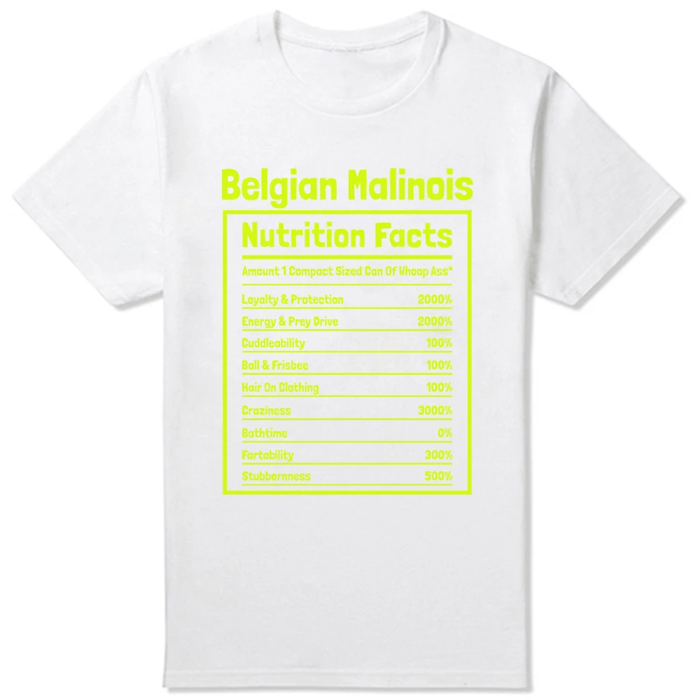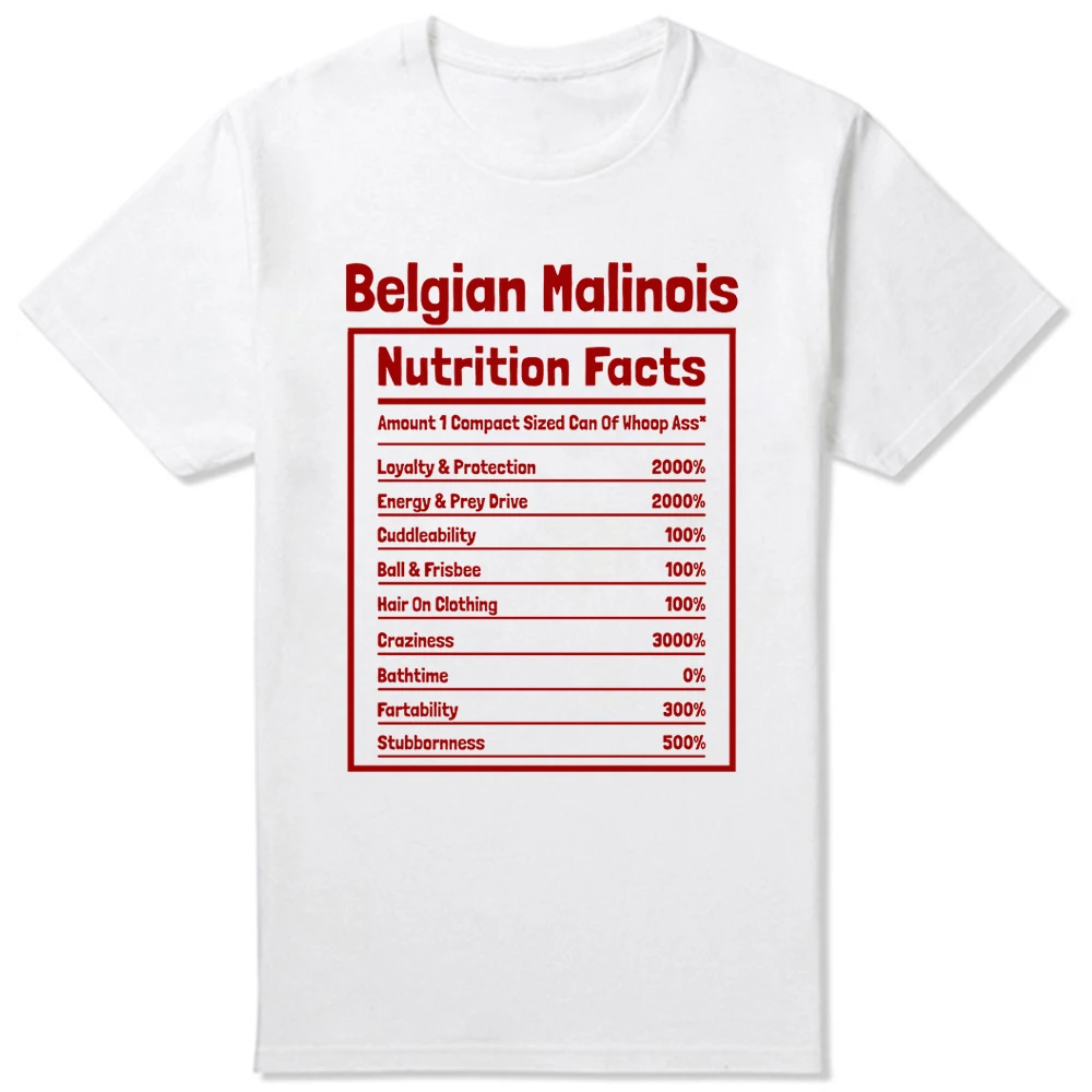 Informazioni nutrizionali del pastore belga Malinois T-shirt natalizie estive in cotone con grafica streetwear a maniche corte, regali per papà