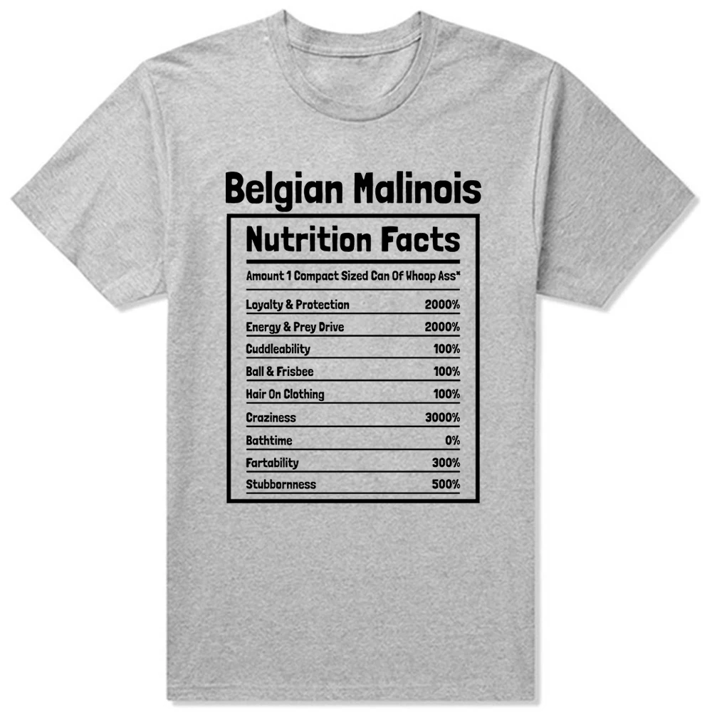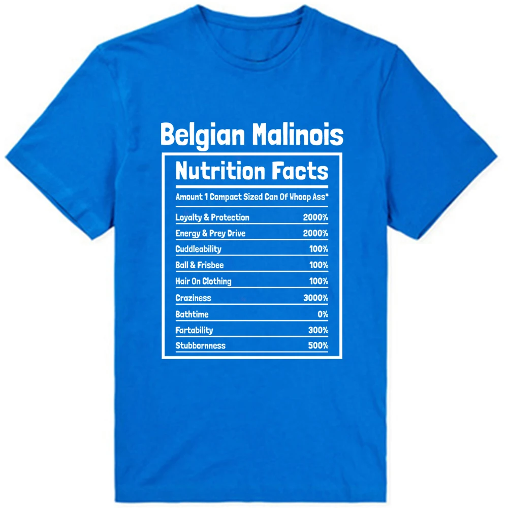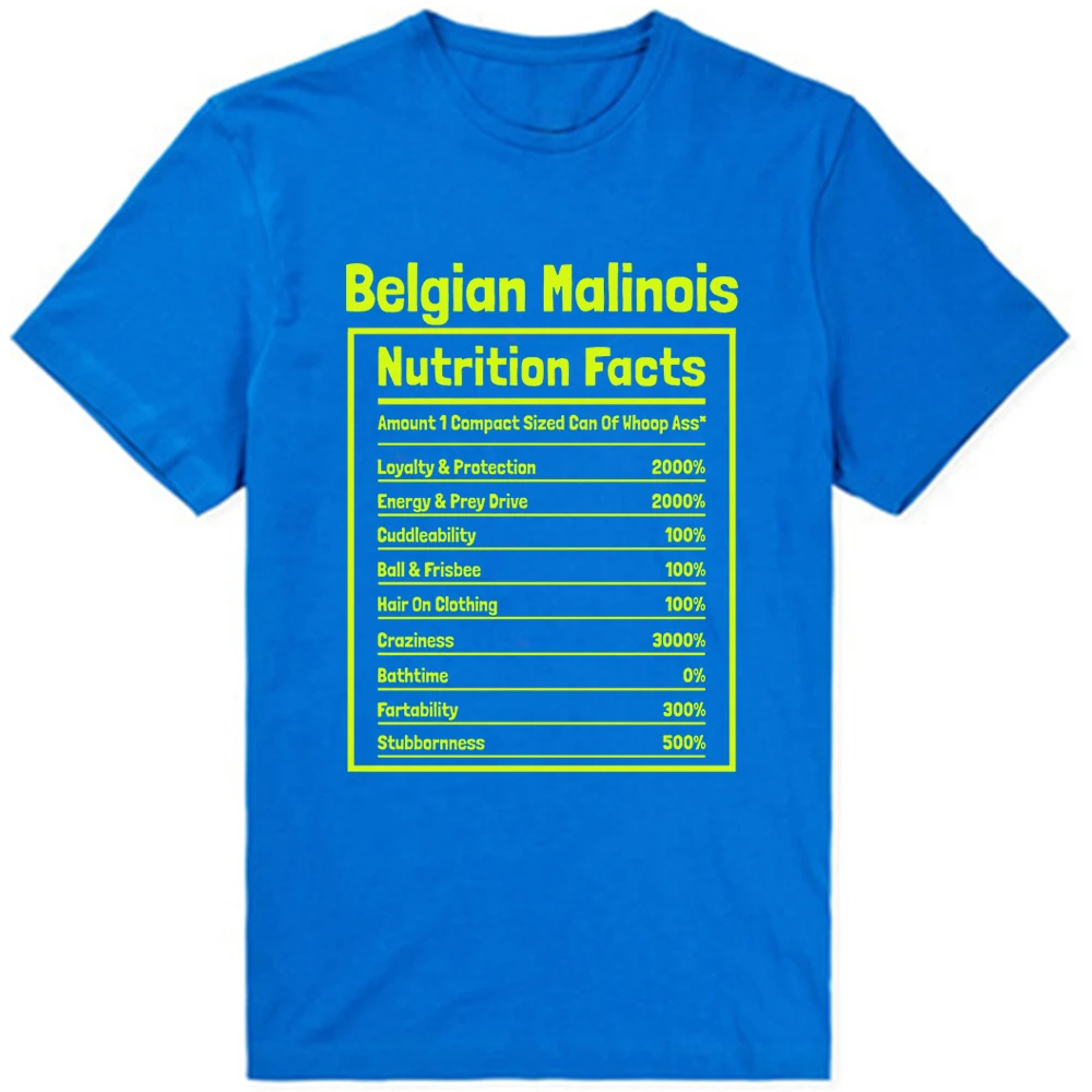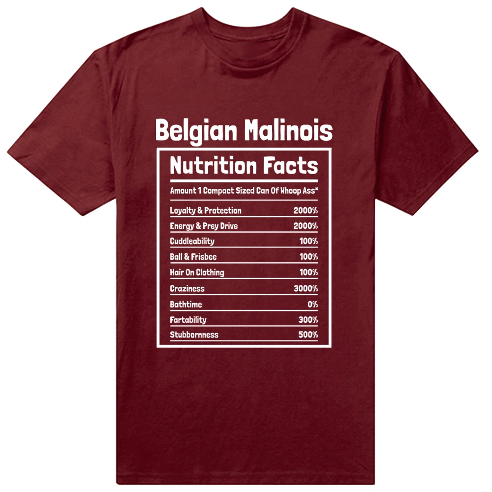 Informazioni nutrizionali del pastore belga Malinois T-shirt natalizie estive in cotone con grafica streetwear a maniche corte, regali per papà