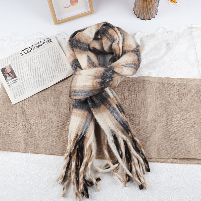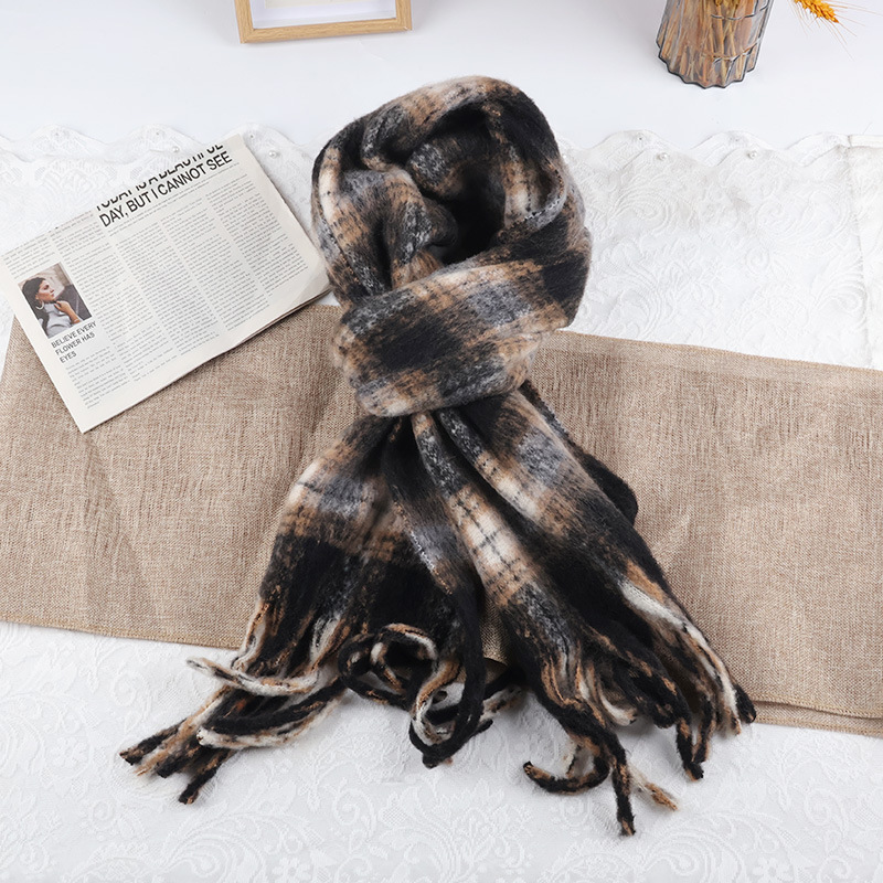 Beautiful color scheme~Artistic green imitation cashmere scarf for female students, thick mohair warm scarf, long shawl