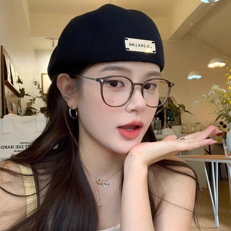 Korean Style Black Beret for Women, Spring and Summer, Breathable Woven, Reversible, Thin Forward Cap, Large Head Circumference, Trendy Hat