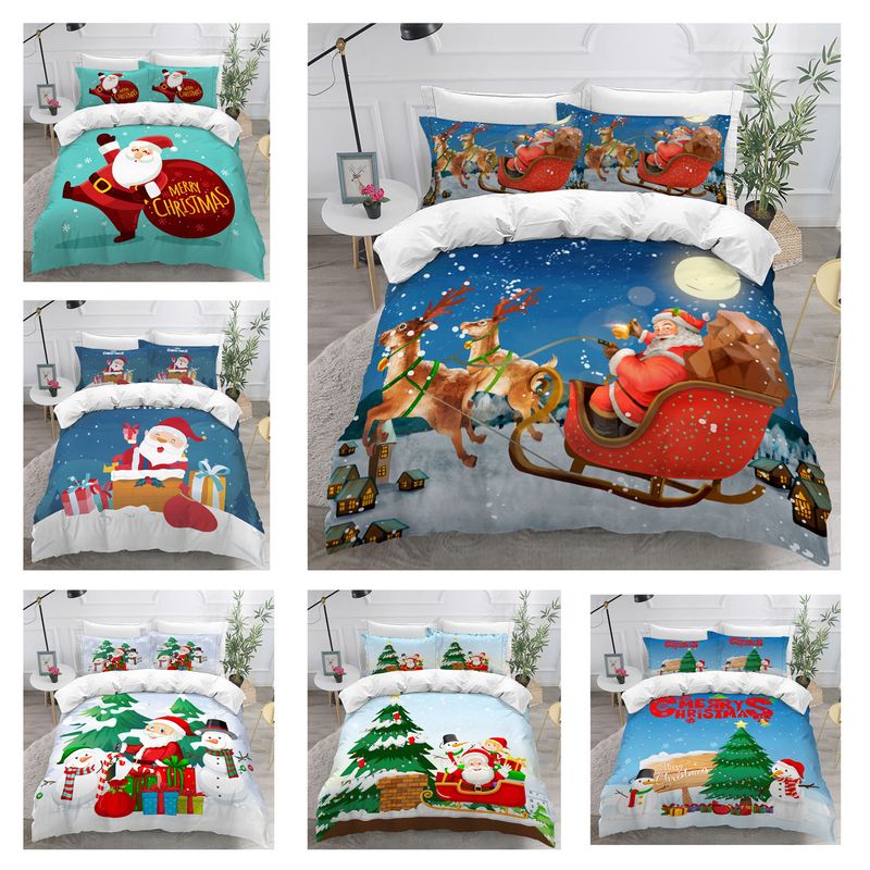 Biancheria da letto di alta qualità in tessuto natalizio, copripiumino con tre cuscini, set di quattro pezzi di lenzuolo, decorazione per la casa