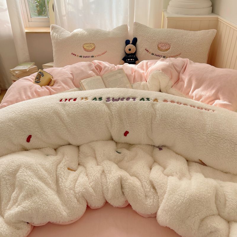 2025 Class A Thickened Warm Milk Velvet Bedding Set Four-Piece Lamb Wool Duvet Cover Double-Sided Fleece Bed Sheet Three-Piece Set