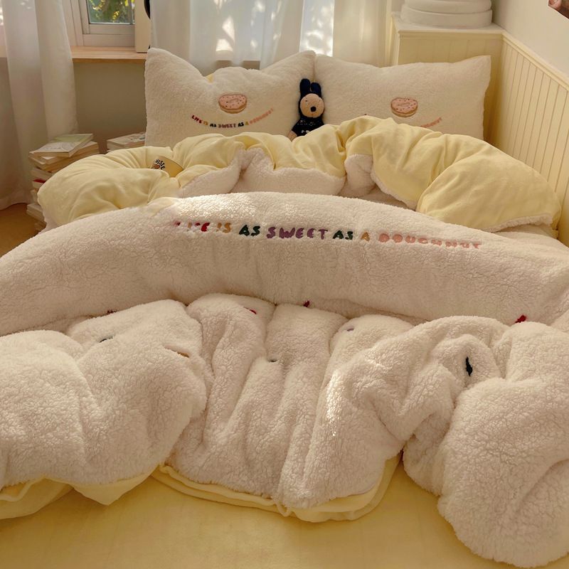 2025 Class A Thickened Warm Milk Velvet Bedding Set Four-Piece Lamb Wool Duvet Cover Double-Sided Fleece Bed Sheet Three-Piece Set