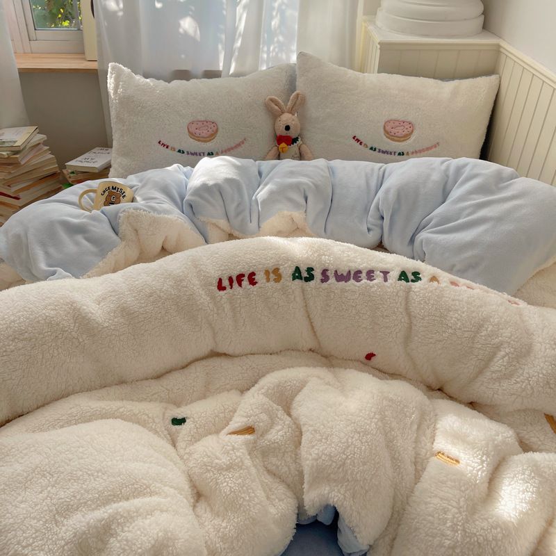 2025 Class A Thickened Warm Milk Velvet Bedding Set Four-Piece Lamb Wool Duvet Cover Double-Sided Fleece Bed Sheet Three-Piece Set