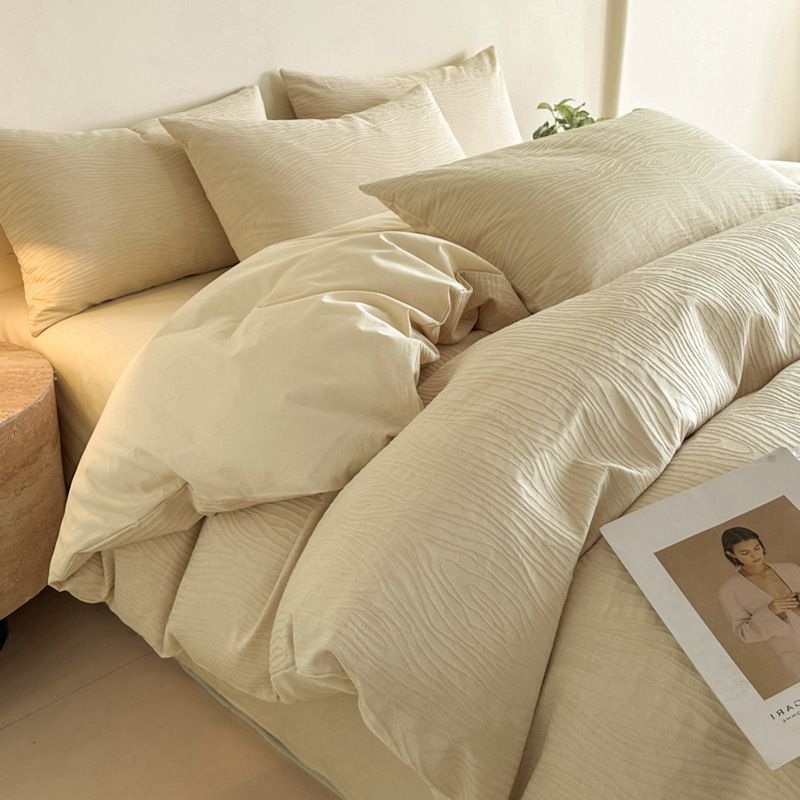 Simple and Elegant Bedding Set Four-Piece Set All Pure Cotton Washed Cotton Jacquard Duvet Cover Bed Sheet Single Dormitory Three-Piece Set