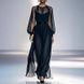 Completo due pezzi in rete nera – Elegante abito lungo a vita alta con maniche lunghe e rivestimento trasparente (nero senza tempo, versatilità dall'ufficio al cocktail)