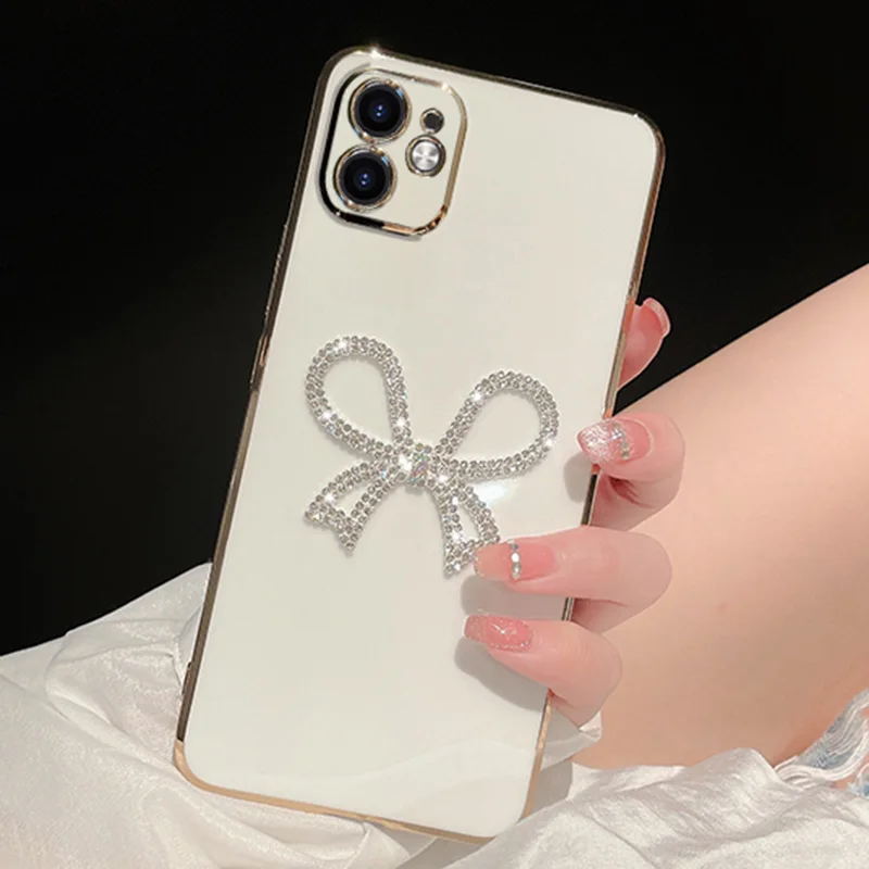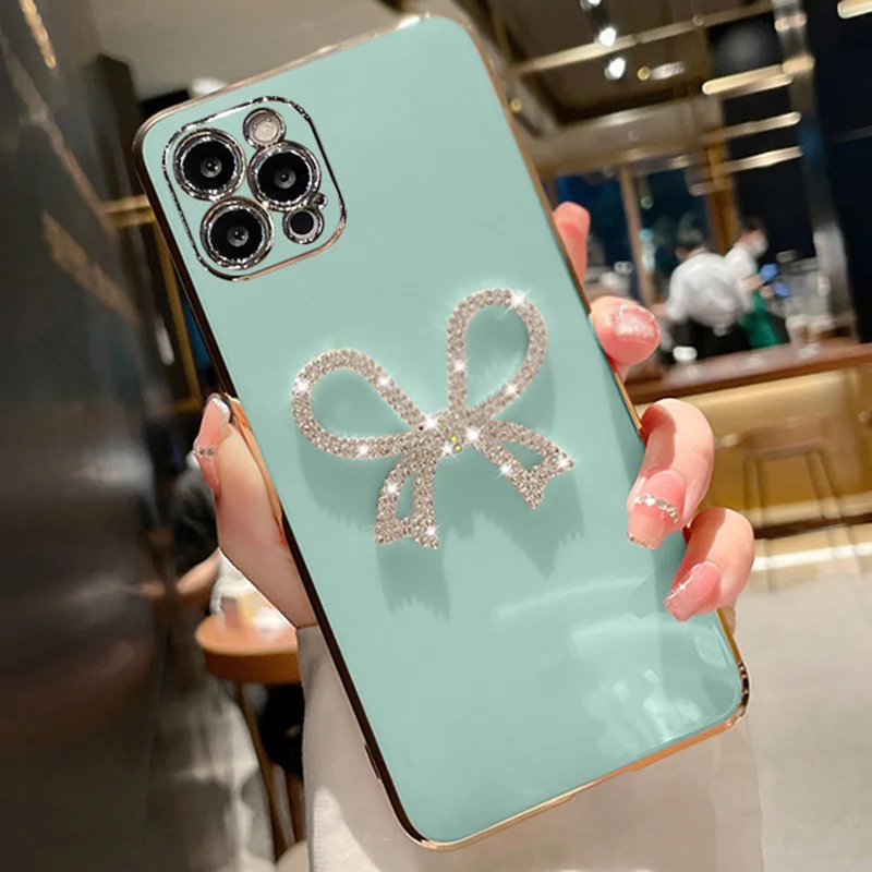 Bling Plating Soft Case For Redmi 12C Note11S 11 Pro 12S 10C 10A 10s 9T 9s 9C 9A 8 8T A1 Plus Diamond Cute Bow Cover Caqa