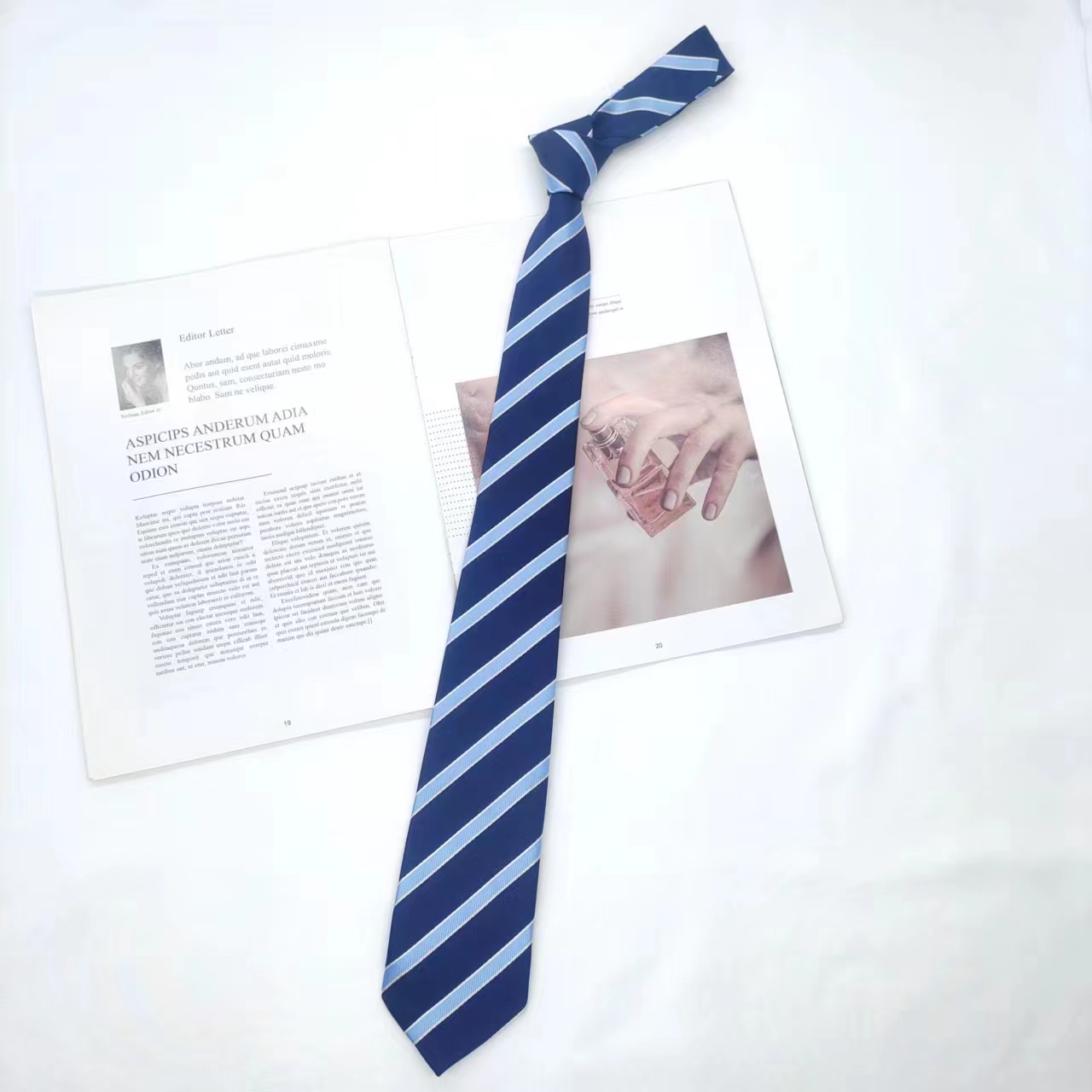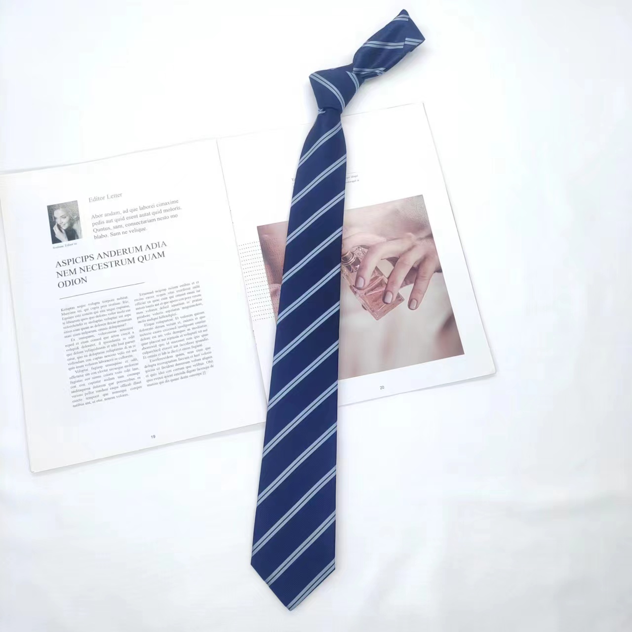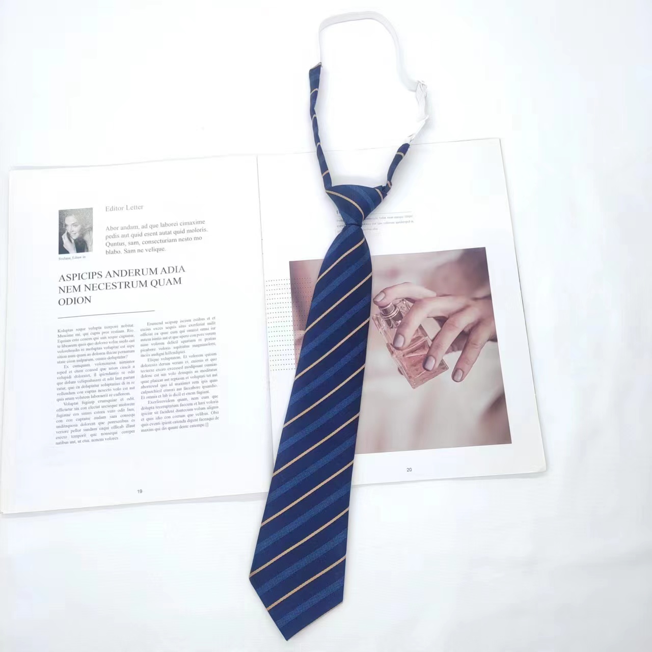 Camicia senza cravatta stile JK Lazy No-Tie blu, accessorio per laurea a righe, per donna, annodata a mano per uomo DK