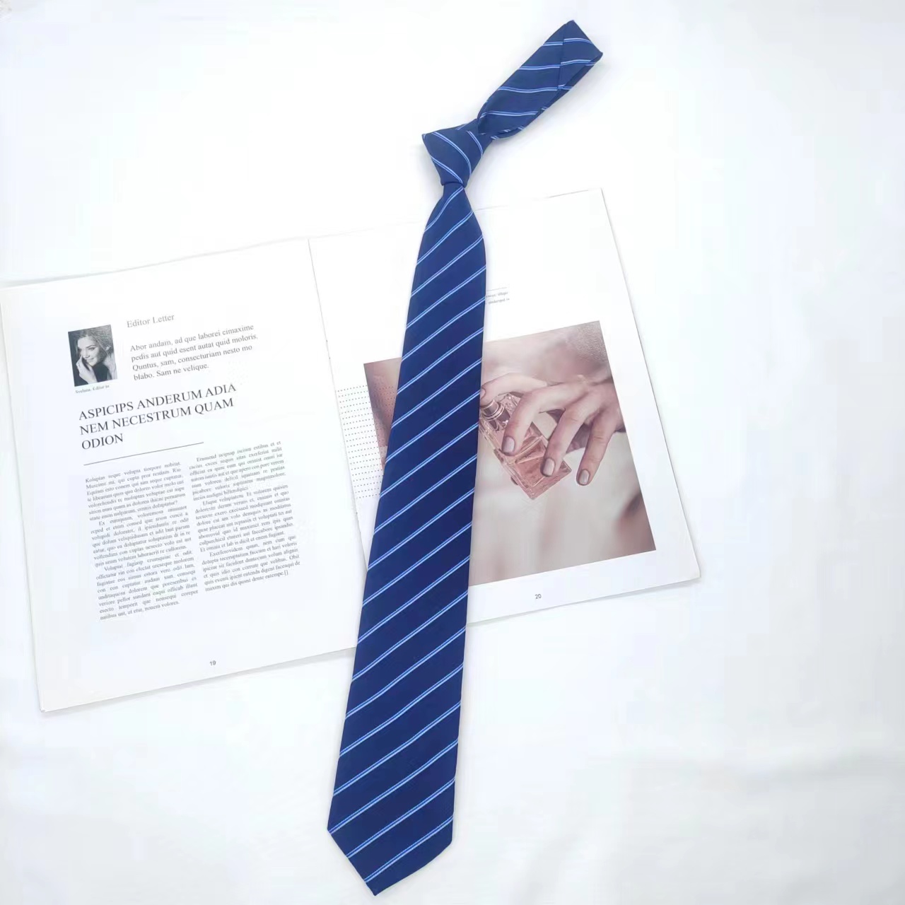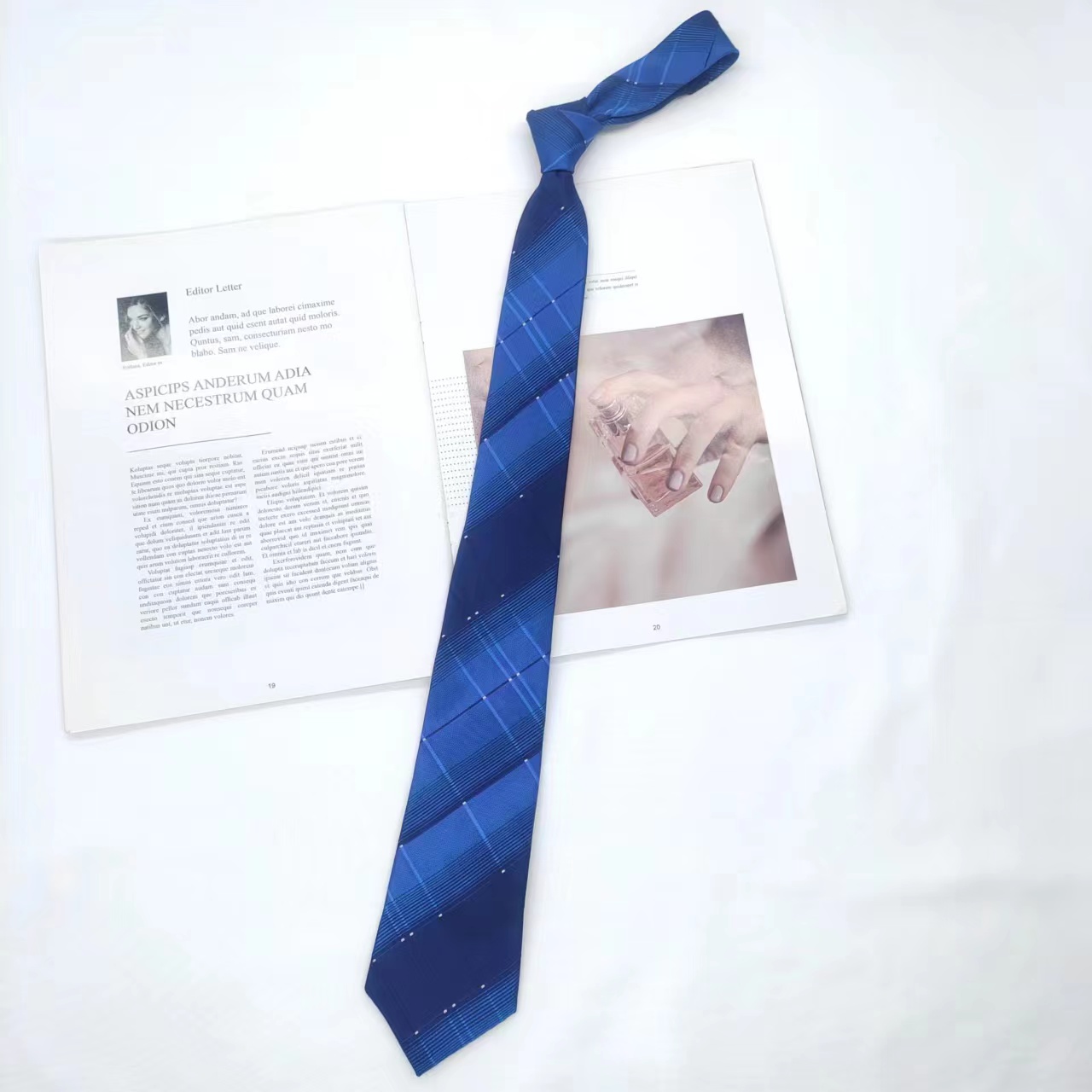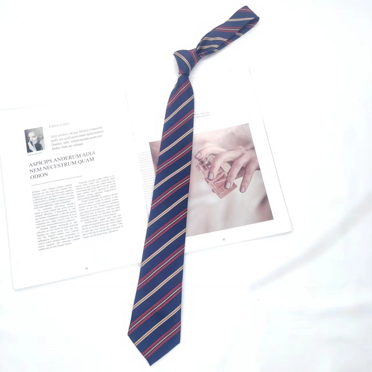 Camicia senza cravatta stile JK Lazy No-Tie blu, accessorio per laurea a righe, per donna, annodata a mano per uomo DK