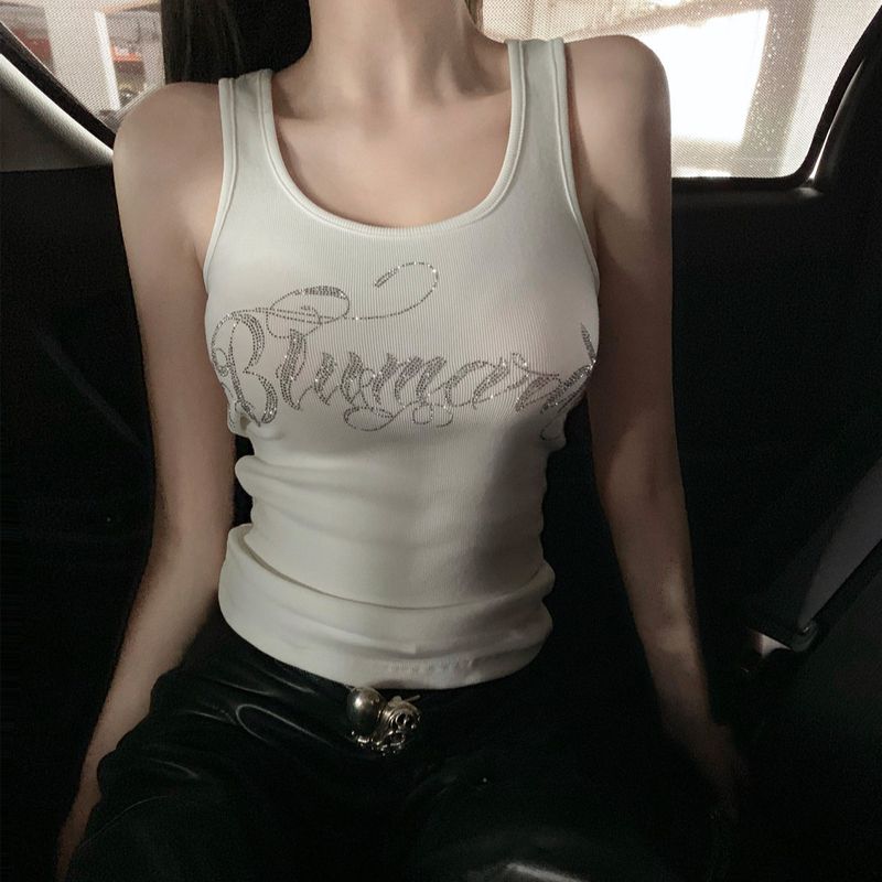 High Version Blumarin* Style Hot Girl Sexy Camisole Top for Women with Rhinestone Letters Tight Inner Vest for Women